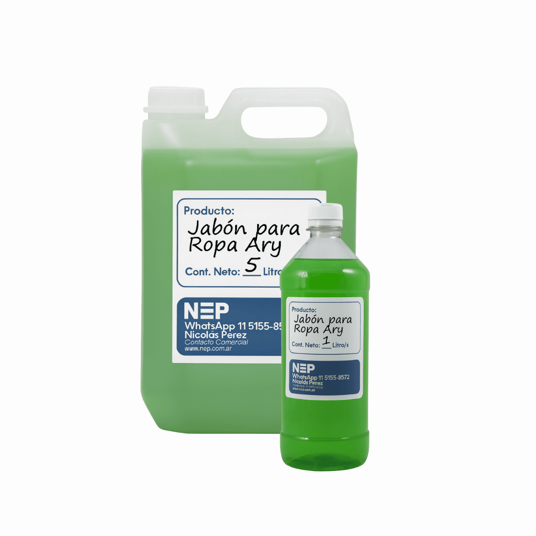 Nuestro Jabón para Ropa ARY está formulado para brindar una limpieza superior en cada lavado. Su fórmula equilibrada remueve la suciedad, respeta las fibras y deja un aroma suave y agradable en la ropa. Ideal tanto para uso doméstico como profesional.